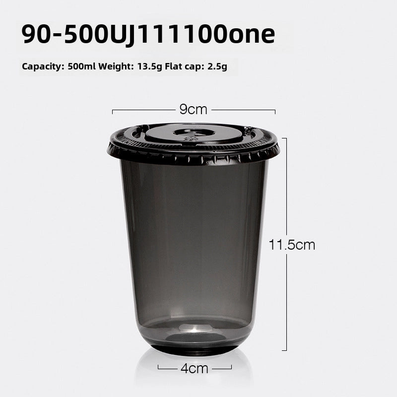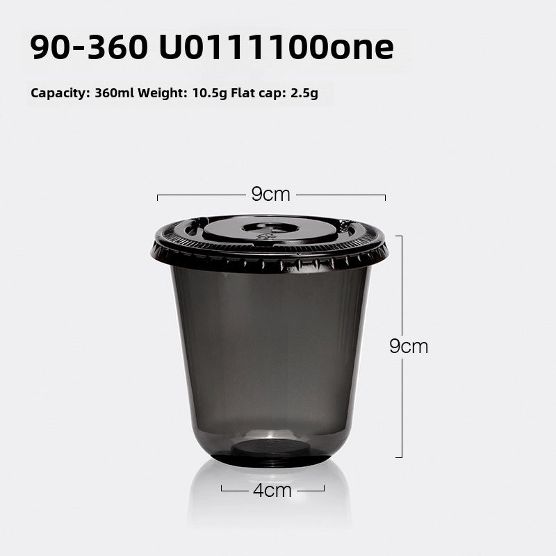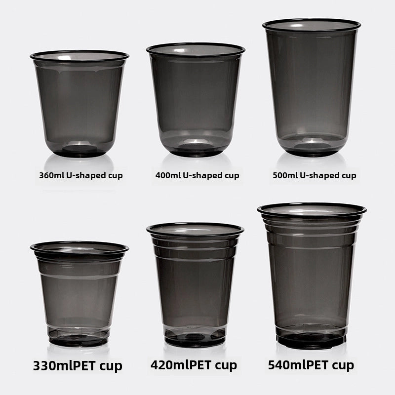 Horn Flower Disposable Cup Black Plastic Ice Coffee Cup PET Cold Drink Net Red Milk Tea Small Black Cup With Lid